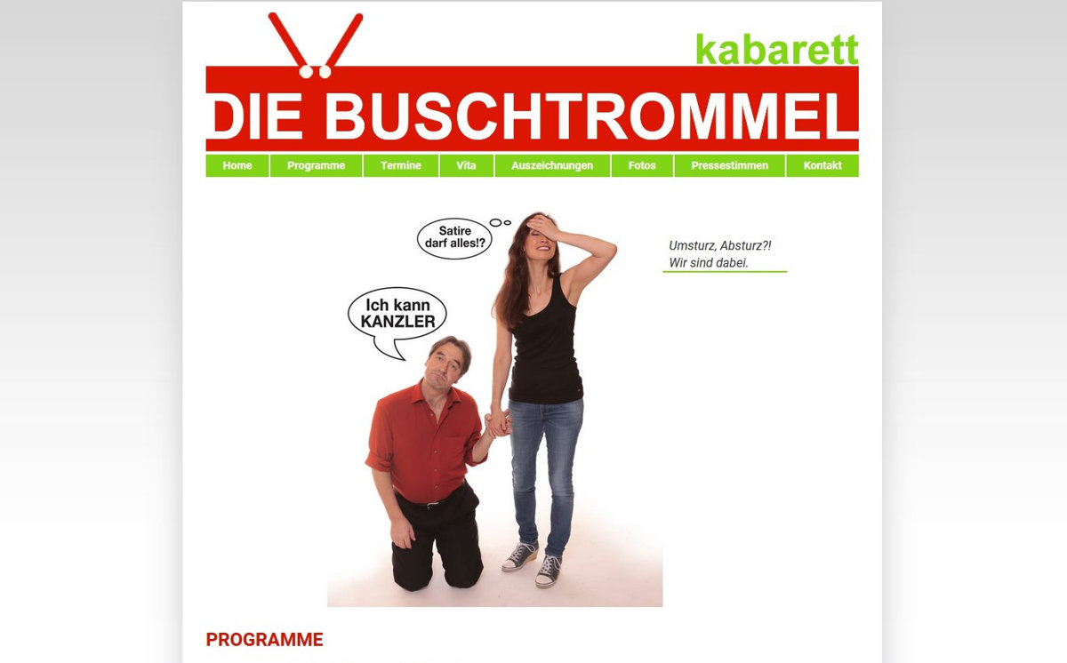 Die Website des Kabarett-Ensembles „Die Buschtrommel“ wurde komplett neu gestaltet und responsiv programmiert.