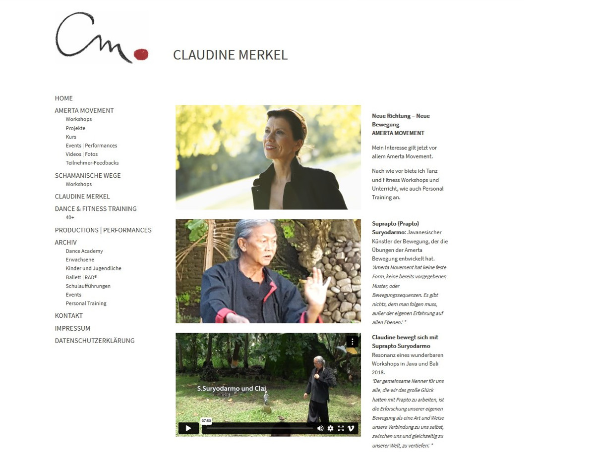 Claudine Merkel hat eine eigenständige Tanz- und Bühnensprache entwickelt, die mit verschiedenen Gattungen der Kunst – Tanz, Schauspiel, Musik – experimentiert und dabei neue Wege beschreitet.