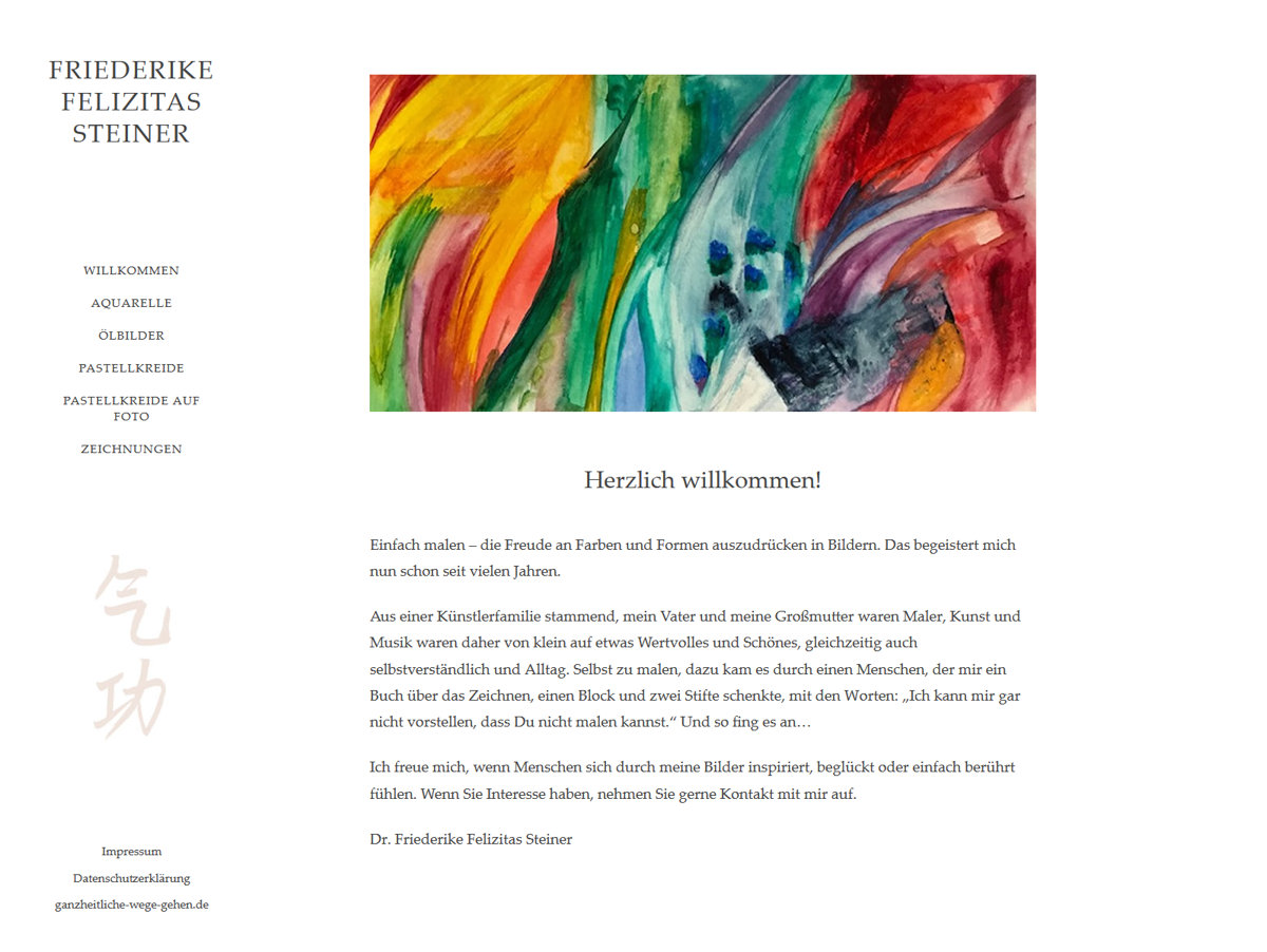 Die Arbeiten von Friederike Felizitas Steiner: Aquarelle, Pastelle und Ölbilder, präsentiert in schönen, minimalistischen Bildergalerien.