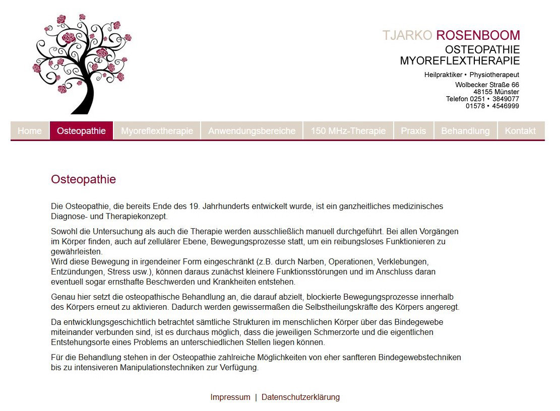 Die Praxis für Osteopathie, Physiotherapie und Naturheilkunde von Tjarko Rosenboom ist zentral in Münster gelegen.